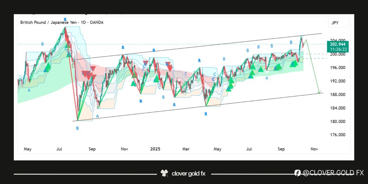 GBPJPY For the Next Week ..... On the daily chart is moving inside a clear ascending channel where price recently touched the upper boundary and showed rejection. The structure indicates the completio...