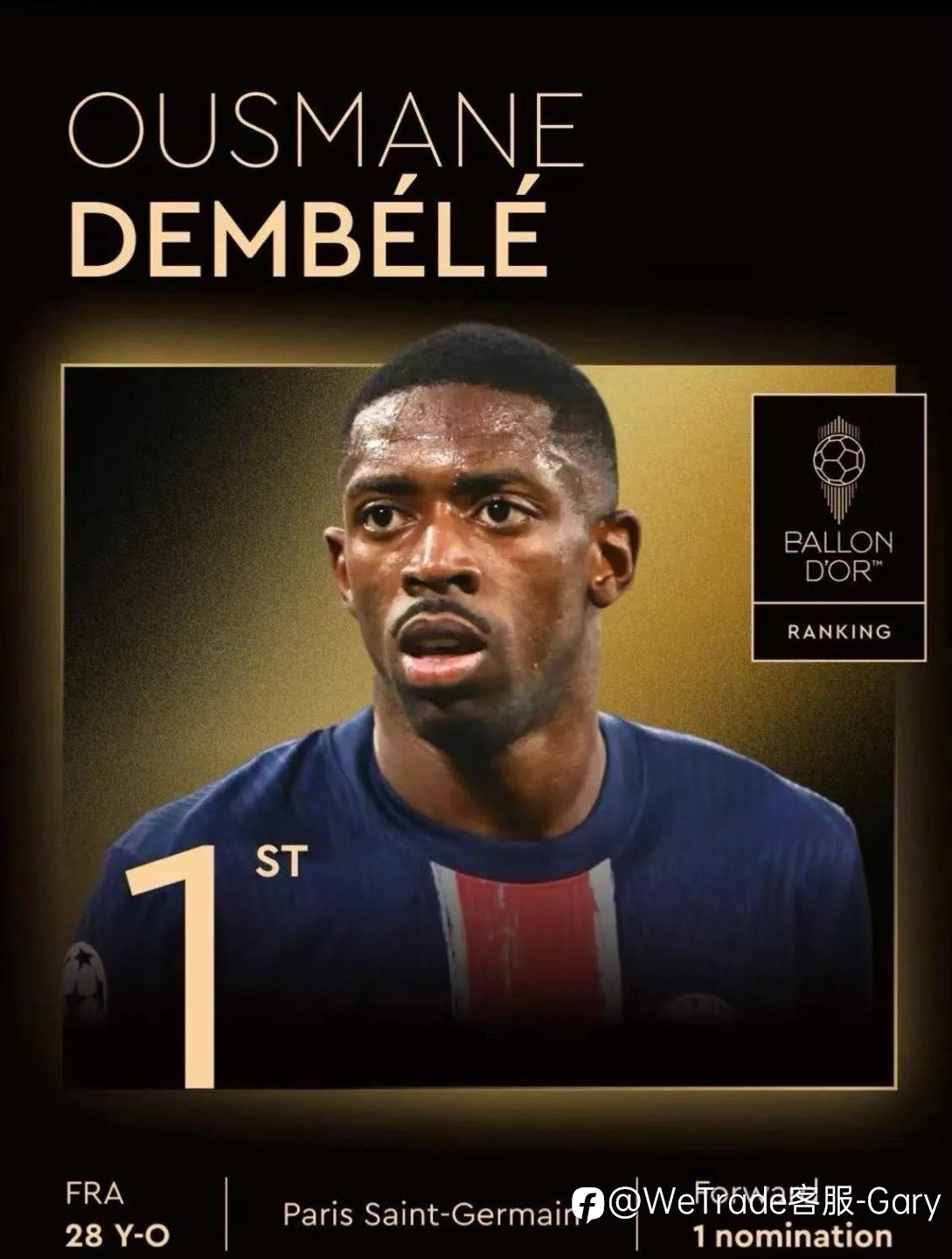 WeTrade X 巴黎圣日耳曼 恭喜大巴黎球员登贝莱,荣膺2025年金球奖。追光的人,终会光芒万丈~