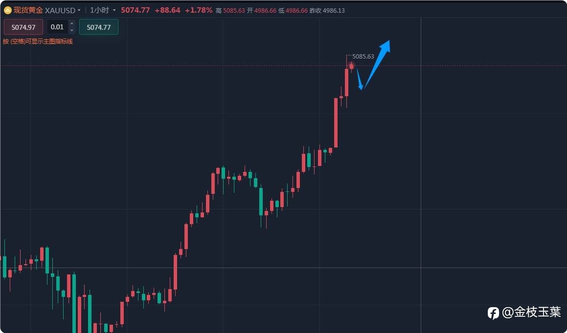 【多单入场】 依托1小时均线支撑,现价5075附近多,5068补,风控5062,目标5090-5100突破继续上看