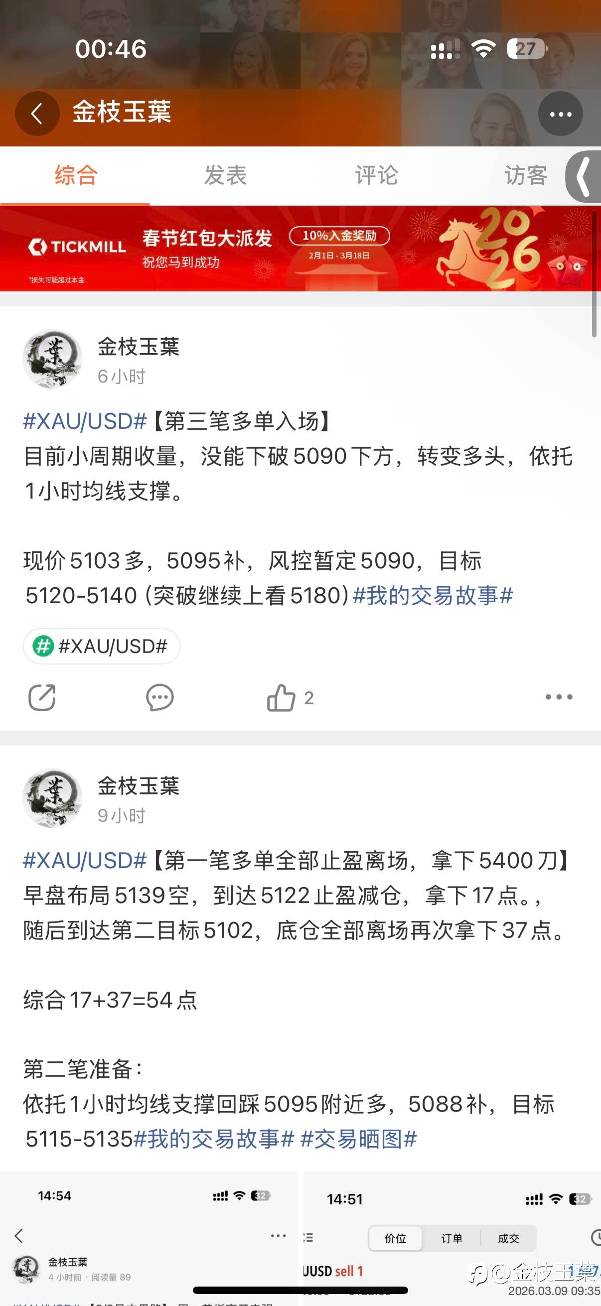 【3/9今日结束,】 第1单:5139空,分别在5122/5102止盈,拿下17+37点(补仓位差些入场) 第2单:5095多,反弹无力保本撤离(补仓位差些入场) 第3单:5103-95多,5190风控撤离 今日结...