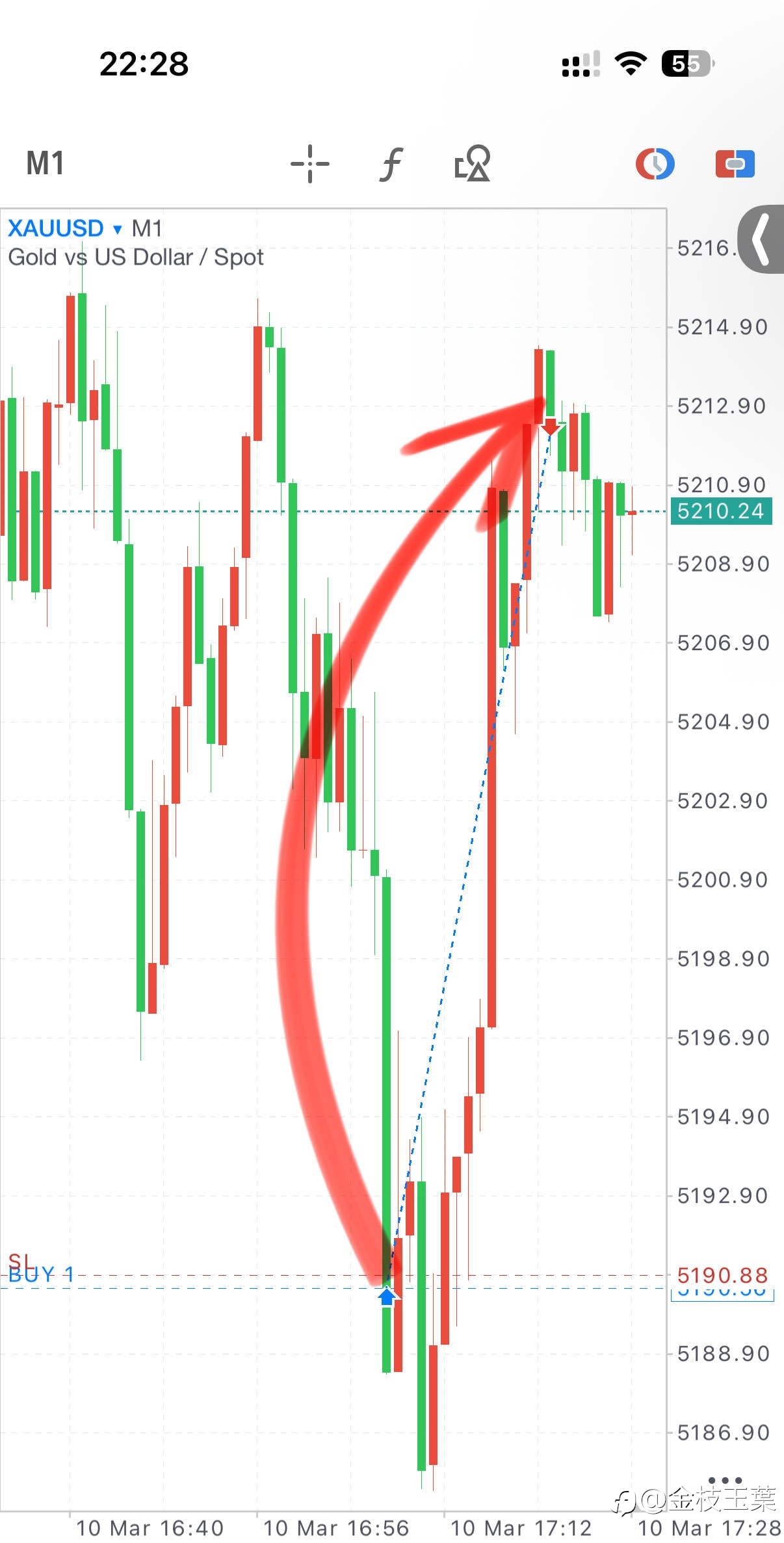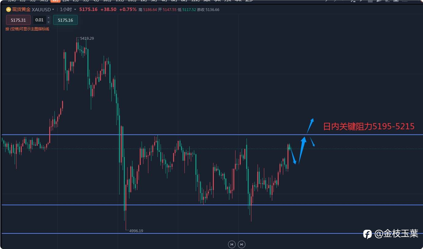 【第二笔多单入场】 依托1小时均线支撑,回踩现价5190多,5183补,风控5175,目标5215-5240