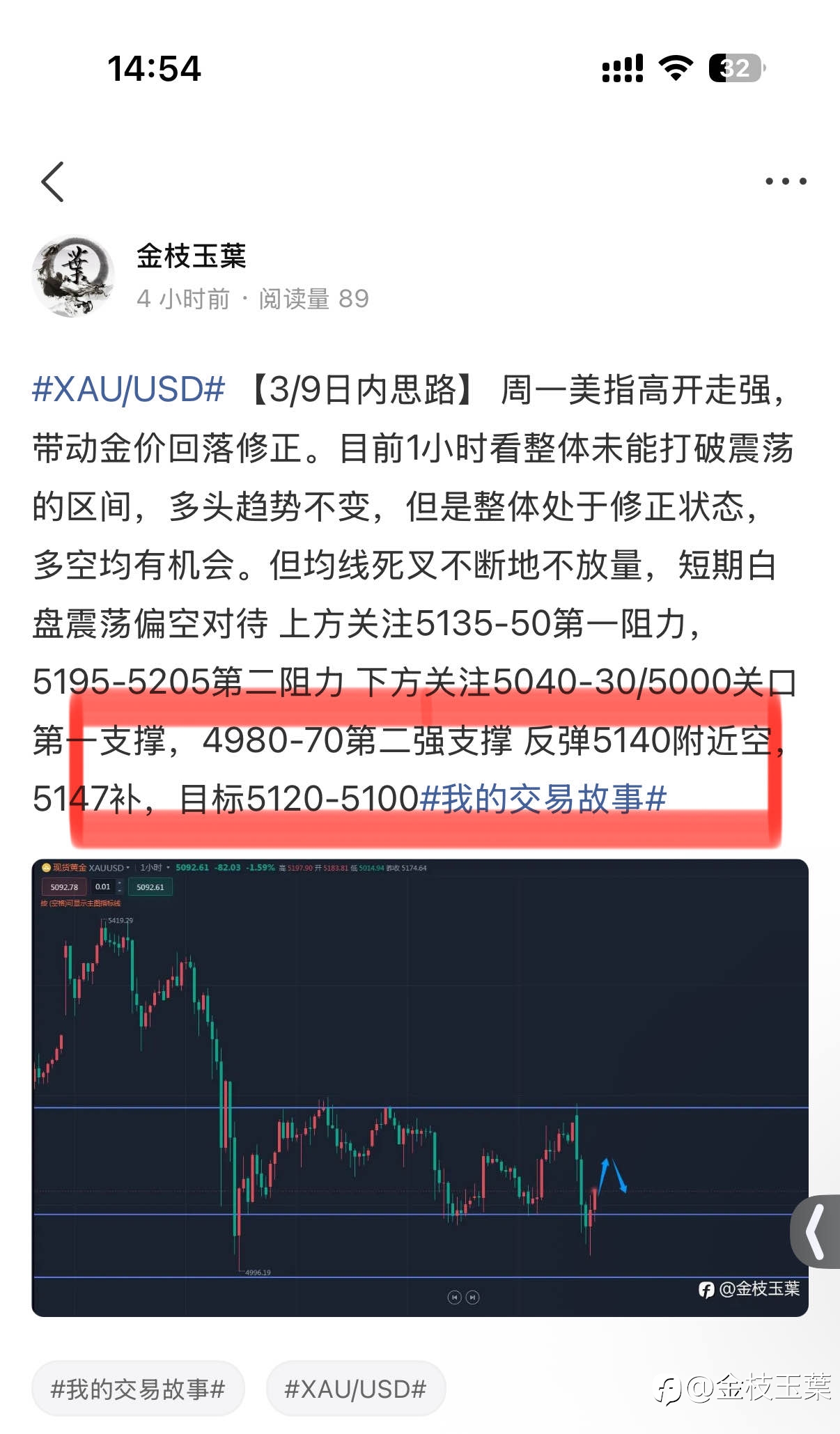 【第一笔多单全部止盈离场,拿下5400刀】 早盘布局5139空,到达5122止盈减仓,拿下17点。,随后到达第二目标5102,底仓全部离场再次拿下37点。 综合17+37=54点 第二笔准备: 依托1小时均...