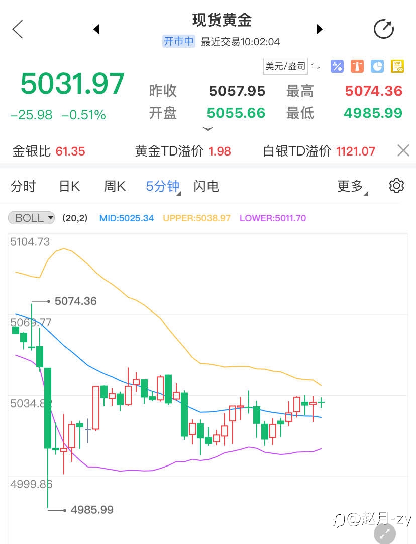 日内第2单入市: 欧盘反弹承压4小时MA5压制。现价5040上下继续空了。 目前这个位置也是1小时BOLL中轨压制。 目标下看5020-10上下即可。站稳BOLL中轨再考虑撤退