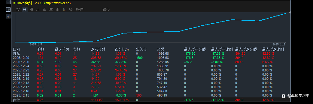 很久没见过波动这么剧烈的联动行情。 从网上不断涌出的各种讨论金价、银价的内容和段子看,我想大概率真到了收尾的阶段。 白银日内上涨超10%这种事,在贵金属的历史行情中极少发生。 【在上周五(12月26日)白银价格单日涨约10%,创下2008年以来的最大单日涨幅。】 而昨晚白银便来了个9%的大暴跌。 任何商品包括贵金属的牛市行情,它的背后依托的依然是“人气”二字。 人气聚集,各种不可能的价格都会被创造出来。 人气不在,再好的东西也会变得无人问津。 而人气,聚很难,散很快。 所有的牛市,恰恰都是在人声鼎沸处,戛然而止。 5%挑战赛目前的榜首交易员freedom5200,在这样波澜壮阔的行情中依然稳中
