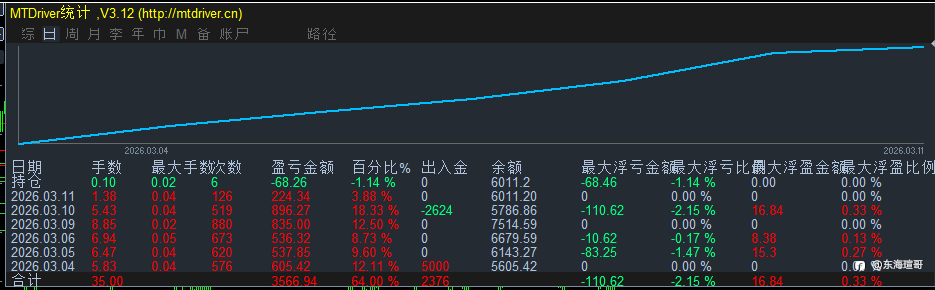 5000能运作小手数开单 不靠暴力只靠稳定 三月战绩+$3566.94
