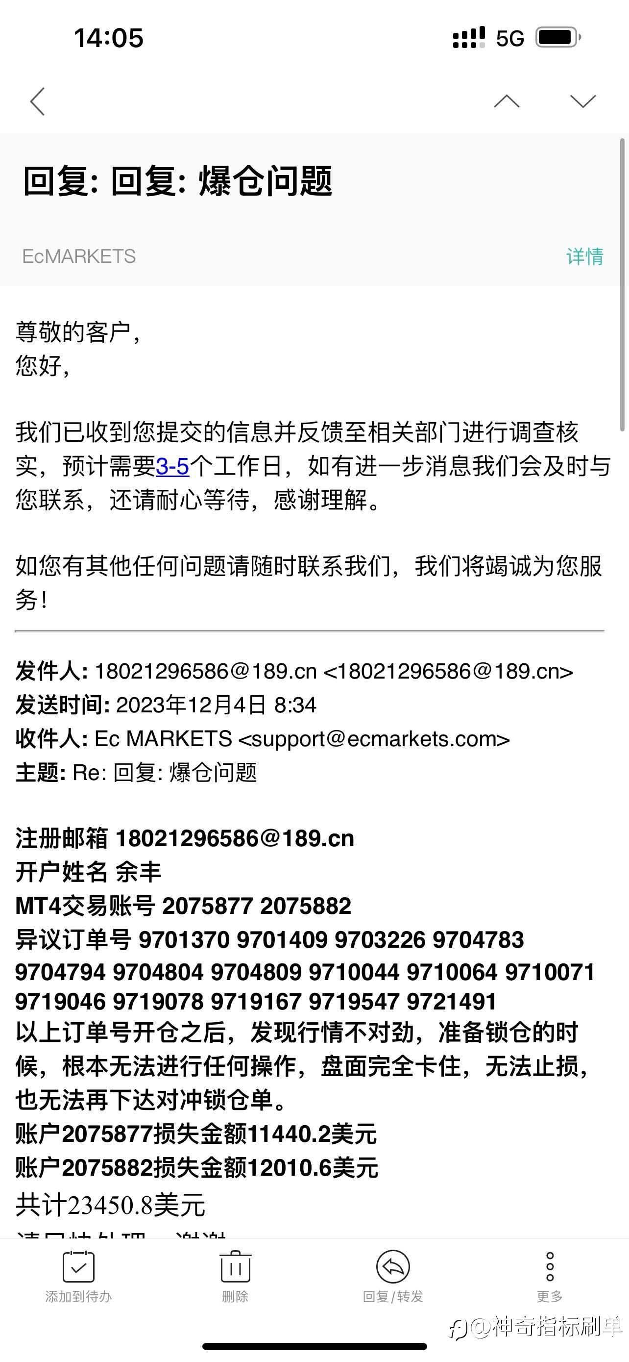 Ec MARKETS是一家非常没有准则的平台,上次1938跳水1920,几乎所有平台都已经赔付,唯独EC不给客户赔付,这次现货黄金2110之上开始卡盘,一直卡盘15分钟,导致众多汇友爆仓,又是同样的说辞,提醒各位汇友赶快出金,...