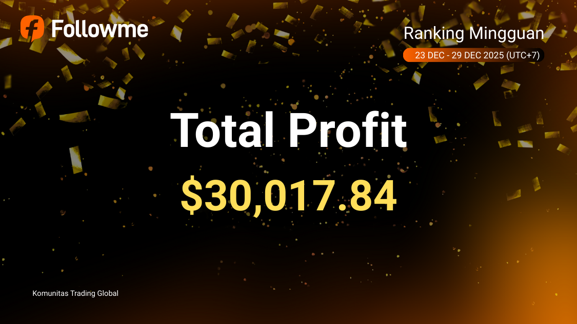 Ringkasan Performa Mingguan Komunitas Followme Dalam satu minggu terakhir, trader, copytrader, dan signal provider di Followme mencatat total profit gabungan sebesar USD 30,017.84 Weekly Trading Top 5 Rank Trader Profit (USD) 1 Ckan 647.93 2 FolloMe 602.96 3 交易小房 393.71 4 wangchiyao 230.17 5 Kabila