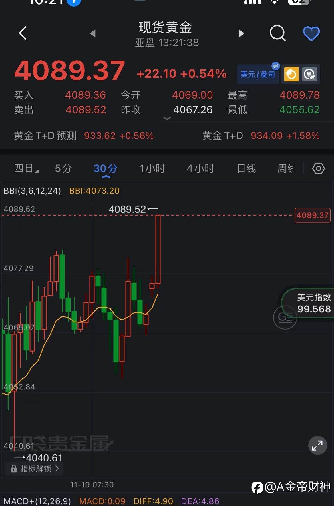 $现货黄金<XAUUSD.GOODS>$ 黄金4069现价多单,目前报价4090附近、成功拿下20美金,稳健全部离场、恭喜参考朋友赚钱