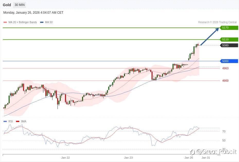 2026年1月27日 黄金行情分析:5100 遇阻引发获利回吐,短线回看 4990 支撑