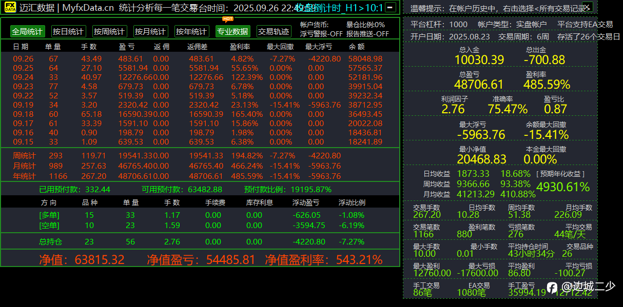 北京时间2025年9月19日17:00,距离约定的比赛结束仅剩一小时。那时的我脑瓜子被嗡嗡的,红的绿的紫的念头像炸开的彩虹糖噼里啪啦乱蹦!那些死去的交易回忆,突然全部跳起来轮流暴揍我!!!(PS:文末有惊喜) 猜对了方向却输给了玄学 都说黄金是“避风港”,经济不好它就会发光~我也这么觉得!从7月到9月,金价跟坐了火箭似的,咻咻涨了300多刀!要是我开局就闭眼开仓0.05手拿到结尾,现在估计已经边喝奶茶边数钱啦~ 然鹅…理想很丰满,现实像被薅秃的猫。 我,每周一准时开多,周五准时平仓,自律得像上学打卡。 结果市场:诶你开多?我跌!你平仓?我周末狂涨!哎我就是玩~ 我:你是不是针!对!我!(╯‵□