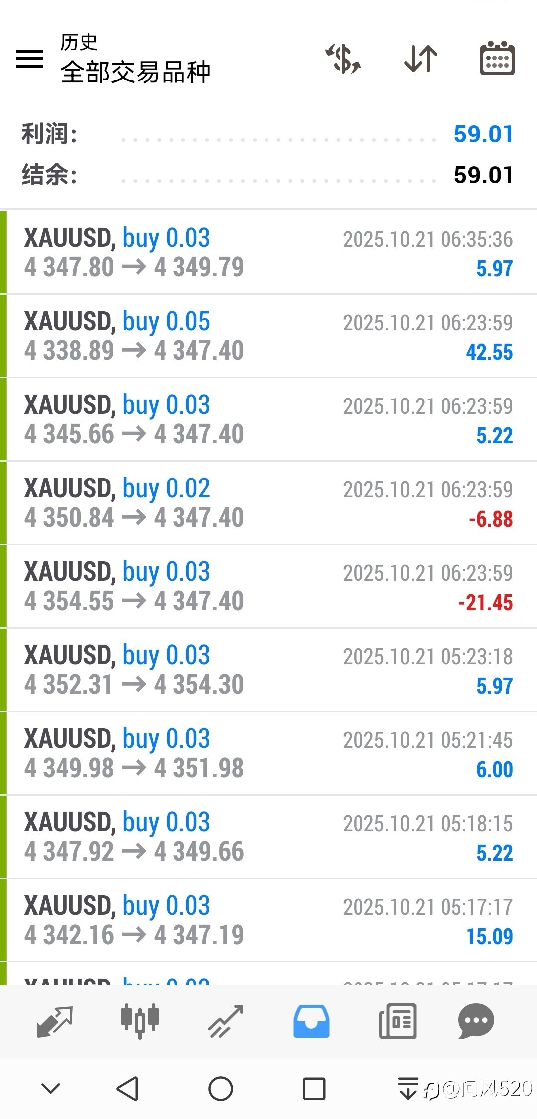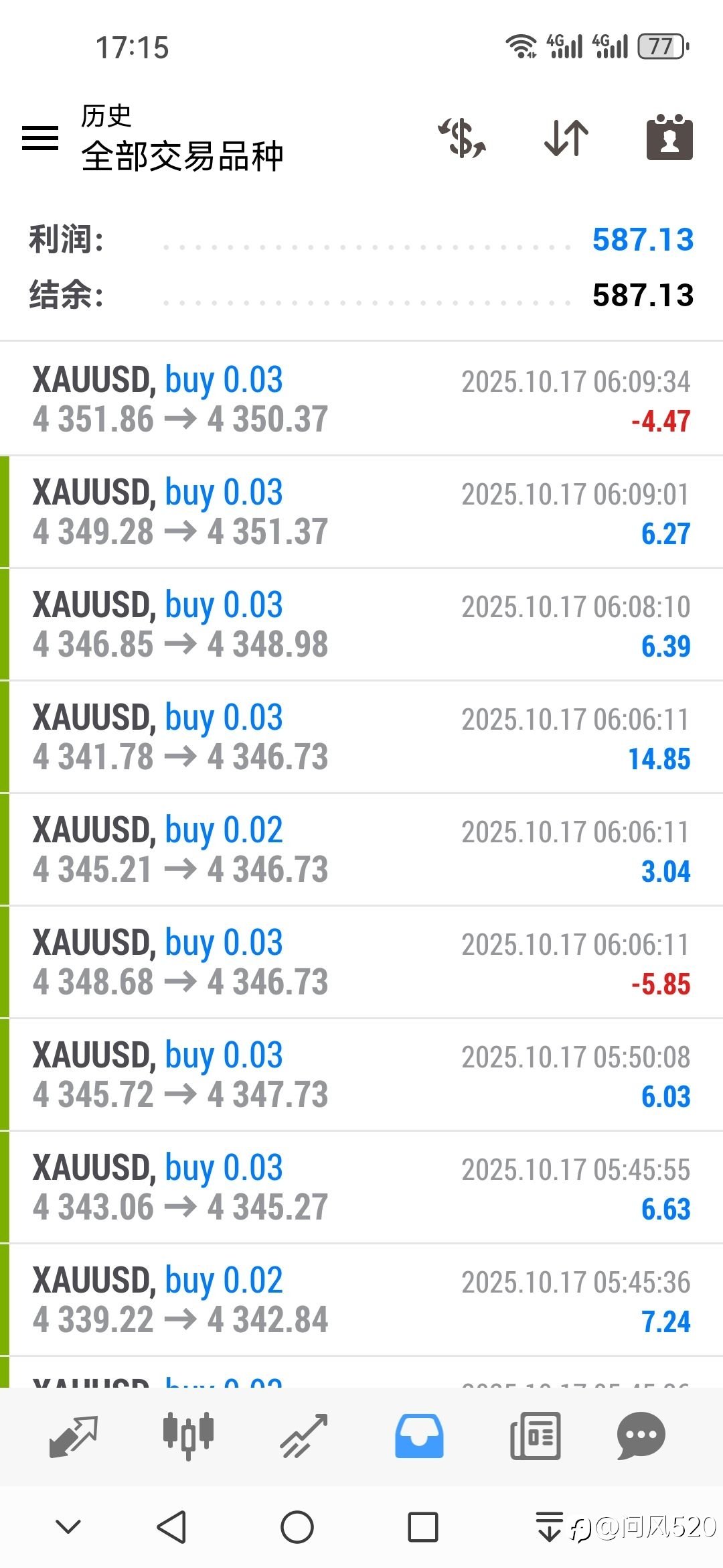 问风520 关注 0 关注 32 粉丝 64 人气 ··· 48 访问 13 Oct 2025 入驻 中国大陆 一个普通人,挑战一天挣100美金,挣够就收。 学着克服人性贪婪,不追涨杀跌,只做风险可控的复利增长。 欢迎一起交流学习,实现共同致富