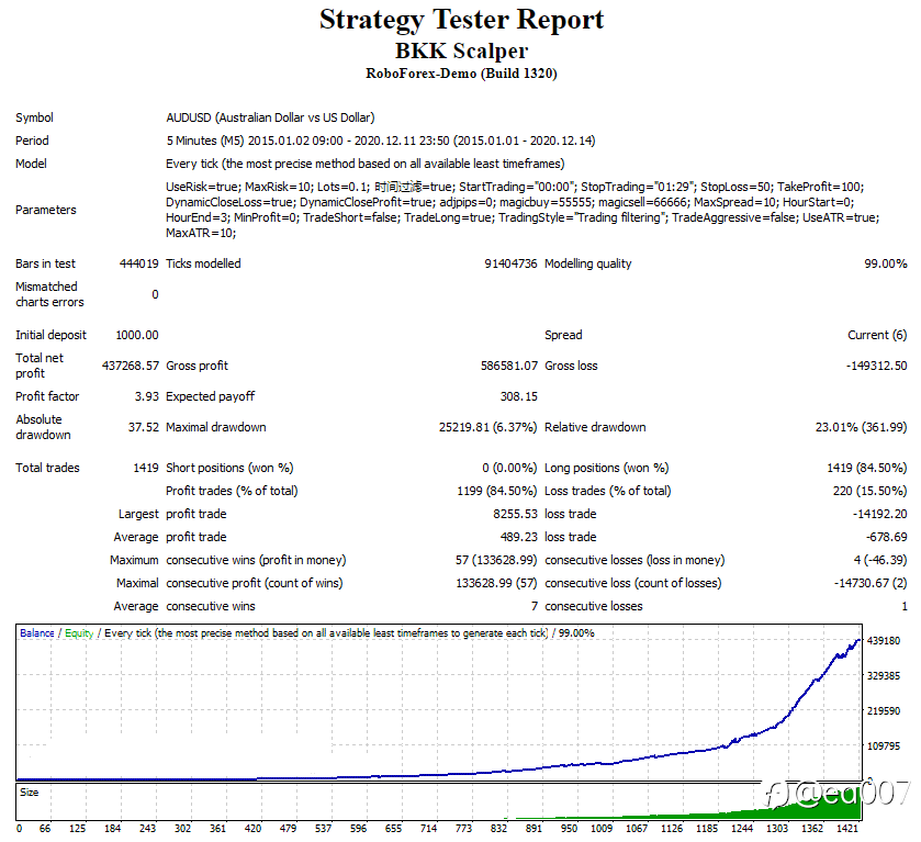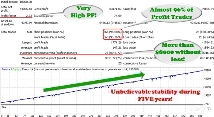 根据开发商的说法,BKK Scalper具有非常先进的秘密算法,该算法能够准确地找到价格反转,并在此基础上以正确的方向进行公开交易。作者还对EA的优化给予了足够的关注,他花了6个月的时间对EA进行了优化,因此我们拥有了一个非常有利可图的机器人,可以根据当前市场情况进行优化。BKK EA不使用危险的资金管理方法,使用止损保证开仓,使用追踪止损管理开仓,还有其他一些有用的选择。 BKK Scalper的特性: 策略类型:头皮EA 平台:MetaTrader 4 货币对:任何,建议的AUDUSD,EURJPY,EURUSD,GBPUSD,USDJPY等 交易时间:推荐M5和M15 BKK Scalp