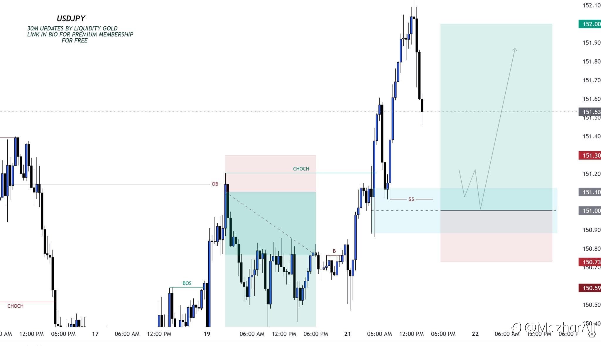#USDJPY 30M Outlook! USDJPY is showing a bullish structure after clear BOS and CHoCH confirmation on the 30M timeframe. Price is now pulling back into the demand zone around 151.00–151.20, aligned w...