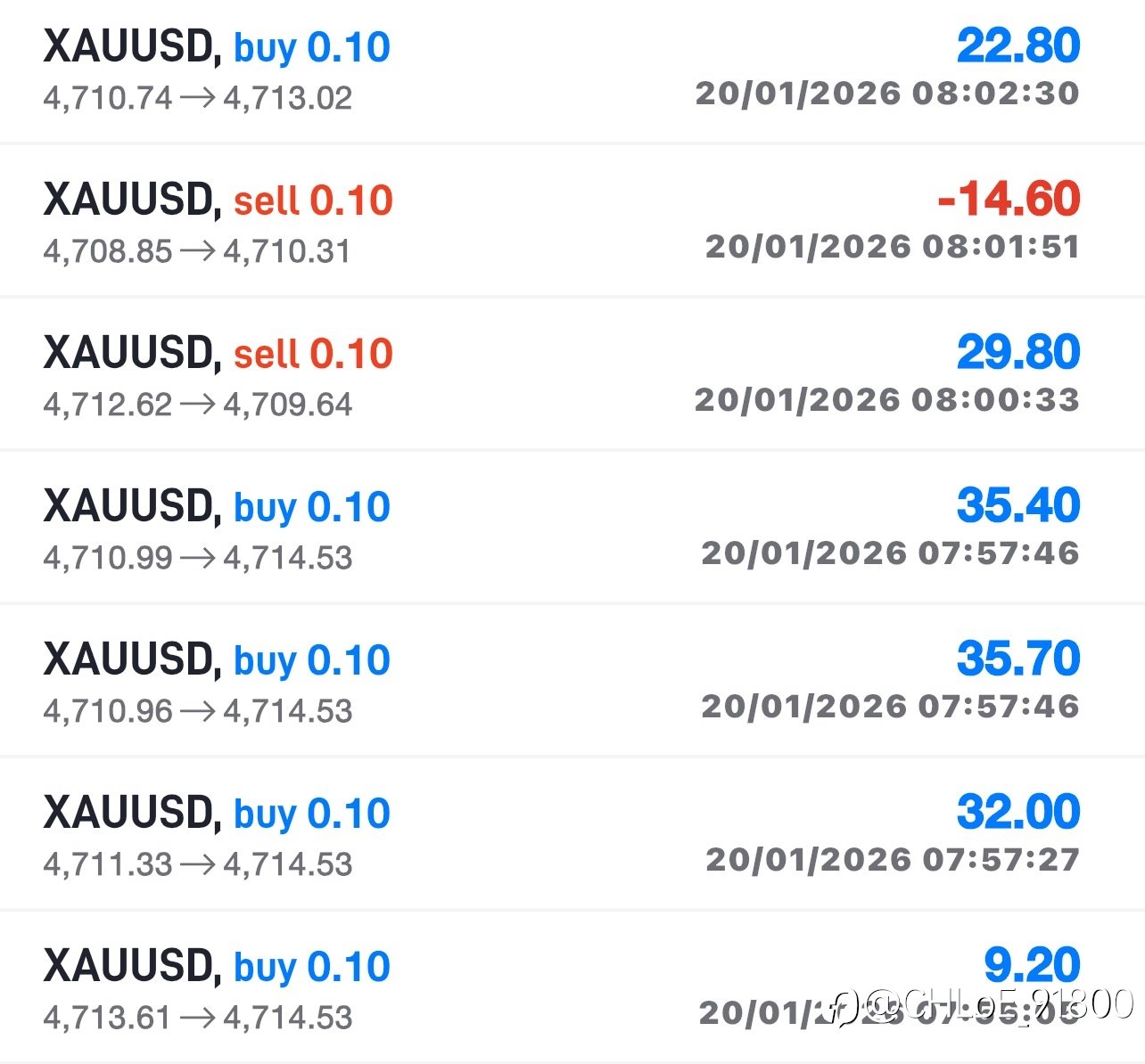 1月13日 我盯着黄金的时候,第一反应不是“机会”, 而是 这行情不太正常。 不是走势不清晰,是情绪太满了。 每一根K线都像在挑衅你: “来啊,再追一次。” 我知道这种盘最容易出事。 它不靠技术杀你,靠的是贪和不甘心。 那天我做得很克制。 方向判断没错,但我只拿了自己计划里的一小段。 看着后面继续走,其实心里也痒过。 但我没动。 因为我太清楚了: 行情越像送钱,越不是给你的。 1月14日 真正的考验来了。 黄金开始变得“温柔”。 回踩、给结构、给你所有“可以上车”的理由。 这种时候最危险的不是亏钱, 而是你开始对自己说那句熟得不能再熟的话: “这次不一样。”我承认,我有一瞬间想加仓。 但我也