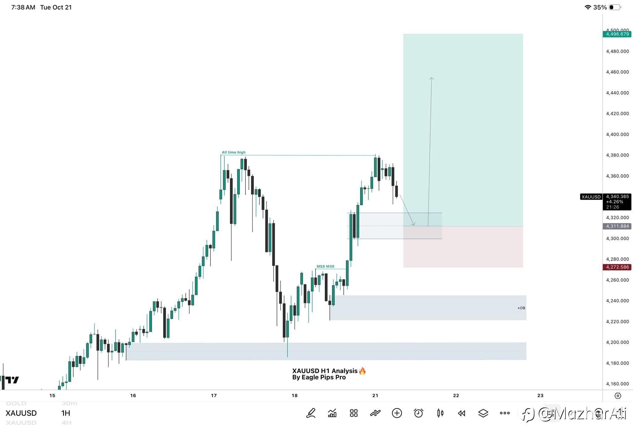 #XAUUSD H1 Outlook 🔥 Gold pulled back after tapping the previous All-Time High, and now it’s approaching a clean demand zone formed after the M30 market structure shift. We’ll be watching for bullish confirmation from this area expecting buyers to step in and push price back toward new highs. Trade