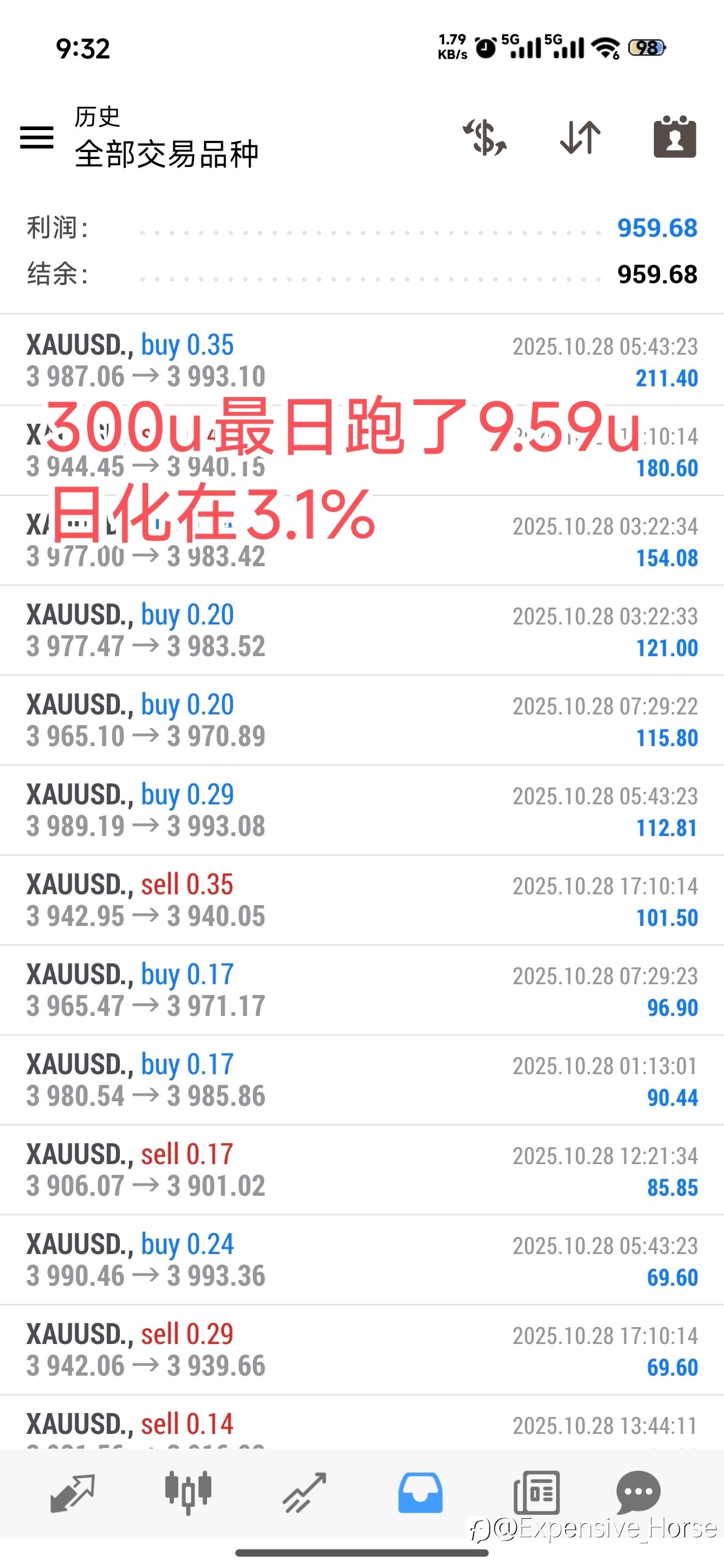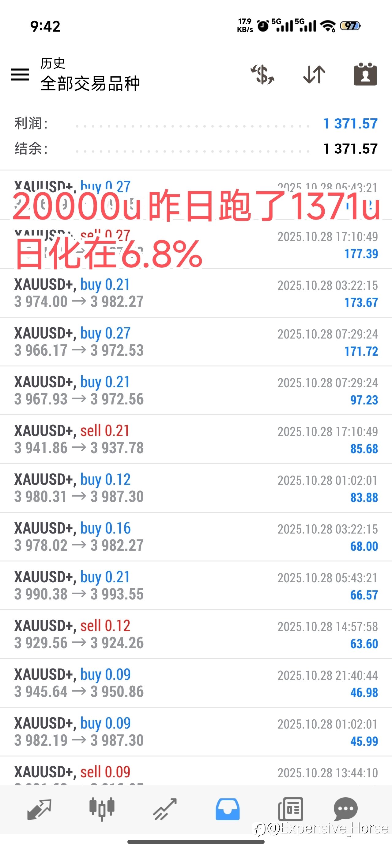 10.28号战绩分享 20000u昨日跑了1371u,日化在6.8% 300u昨日跑了9.59u,日化在3.1% 昨天跑的还不错,大家的战绩怎么样?