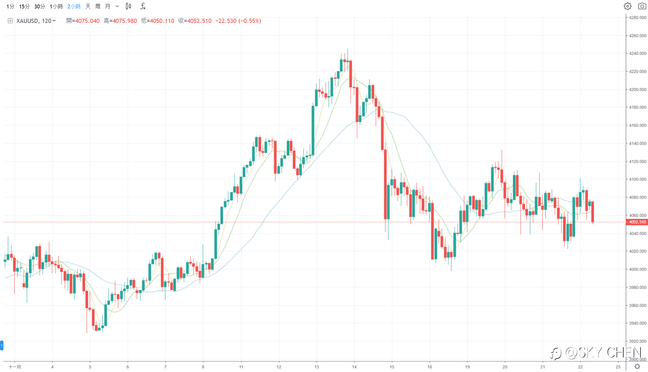 在全球经济复苏步伐不稳、地缘局势时而紧张的当下,黄金外汇市场(XAU/USD)作为投资者眼中的“避险之王”和经济风向标,其价格波动总是牵动人心。2025年11月24日,黄金外汇收盘于4064.41美元/盎司,较上周高点4244.99美元有所回调,但整体仍处于高位震荡格局。上周市场多空博弈激烈,价格一度冲高后回落,这一走势背后,是美联储政策预期、地缘事件和通胀数据的多重交织。展望本周(11月25-28日),黄金外汇或将继续在4000-4100美元区间拉锯,多头蓄势待发,空头伺机反扑。谁将主导行情?本文将从技术面、基本面等多维度剖析,帮助投资者理清思路。毕竟,在这个充满不确定性的时代,黄金外汇不只