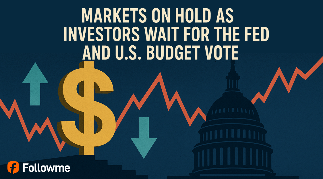 The market is moving carefully today as traders keep their eyes on two big events: the Federal Reserve's upcoming signals on interest rates and the U.S. Congress’s vote on the government budget. Both could shape the direction of the financial markets in the next few days. 1. Fed S