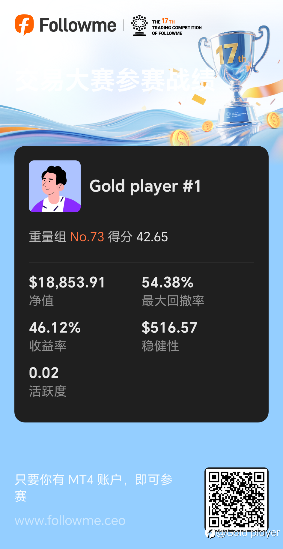 我来了,请大家关注我的#1交易员账户。穿越人海遇见你,交易从此不孤单。