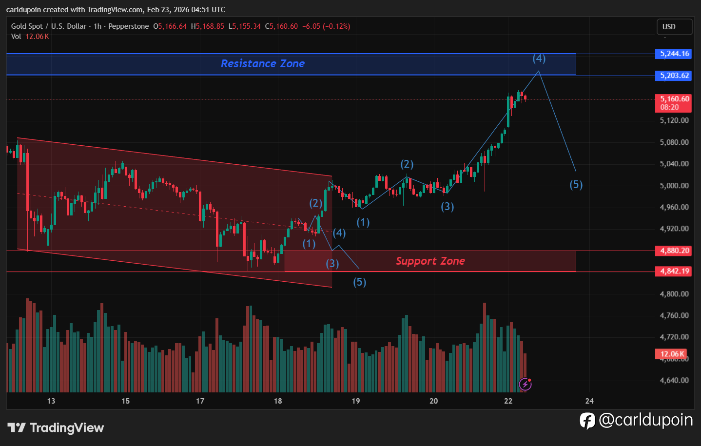 Gold (XAUUSD) is approaching a major resistance zone at 5,203–5,244 after completing a clean impulsive structure from the breakout. Bullish momentum remains intact, but price is now at a decision poi...