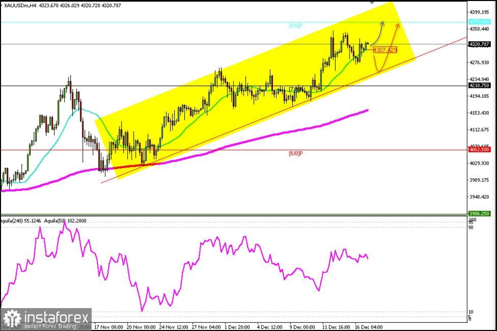 Sinyal trading untuk EMAS pada 17-19 Desember 2025: jual di bawah $4,350 (21 SMA - 8/8 Murray)