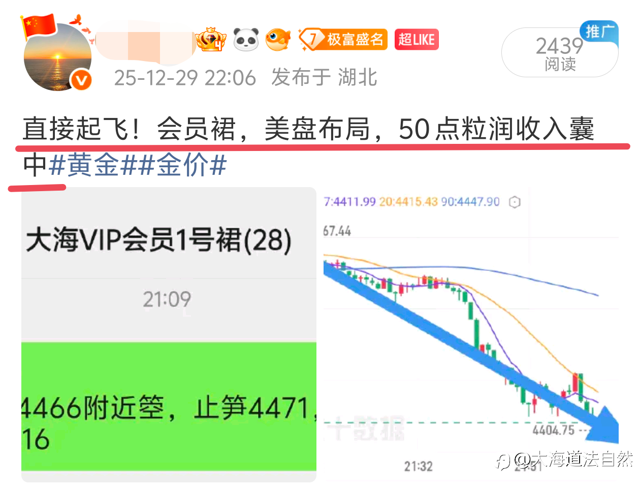 大海道法自然:黄金早评 | 圣诞节后谨慎看多,紧盯阻力与宏观信号 昨日行情先跌后涨走出V型反转,最低探到4448.40后反弹收在4479.47,短期均线还上穿中期均线形成转强信号,4448附近的支撑算站稳了。 宏观面更给劲,美元指数已经跌到97.80的近两个月新低,还在弱势区间里,主要是通胀超预期降温,11月CPI同比才2.7%,市场押注美联储明年降息,这对资产是个支撑。 节后别盲目追,4490-4501是道硬坎,又是长期均线又是前期高点。 操作上就看两点:一是能不能放量突破这个阻力区,能突破就接着拿;二是要是遇阻没量,就赶紧减仓防震荡。另外得盯着美元
