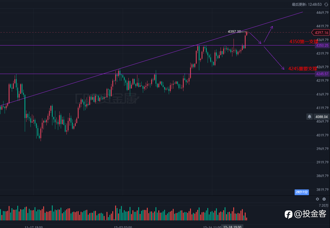 投金客12.22黄金早评:精准斩获62点!黄金冲高遇阻,短线空头机会已至