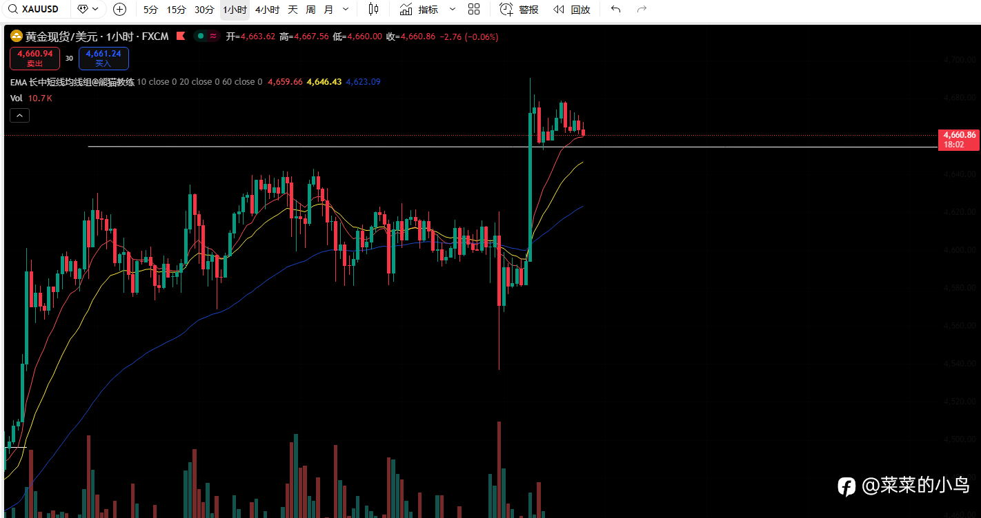 在今天亚盘4670区间,分别建仓,共计0.03手 接下来计划 15分钟4723接多0.02,止损4个点,到位置底仓减仓0.01手 1H回踩4705接多0.02手,止损5个点,如若到位置底仓全清 时效1天,仅供参考,