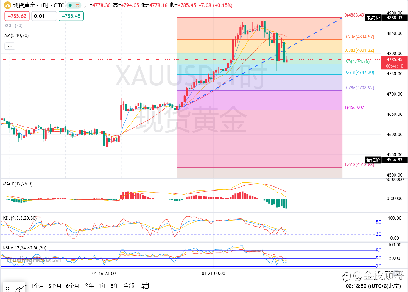 金投顾哥:1月22号早评黄金上行遇阻警惕回落风险