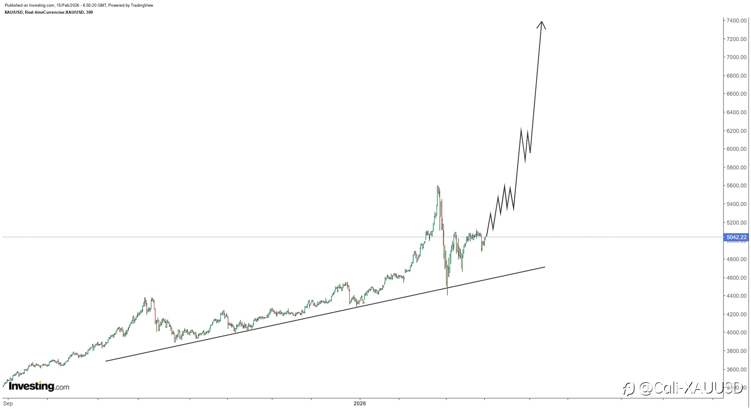 我預計未來3-4個月黃金價格將呈現以下走勢:緩慢攀升至歷史新高,然後突破至6000美元區域,在此區域盤整一周左右,最後呈拋物線式上漲,目標價位為7000-8000美元區域…