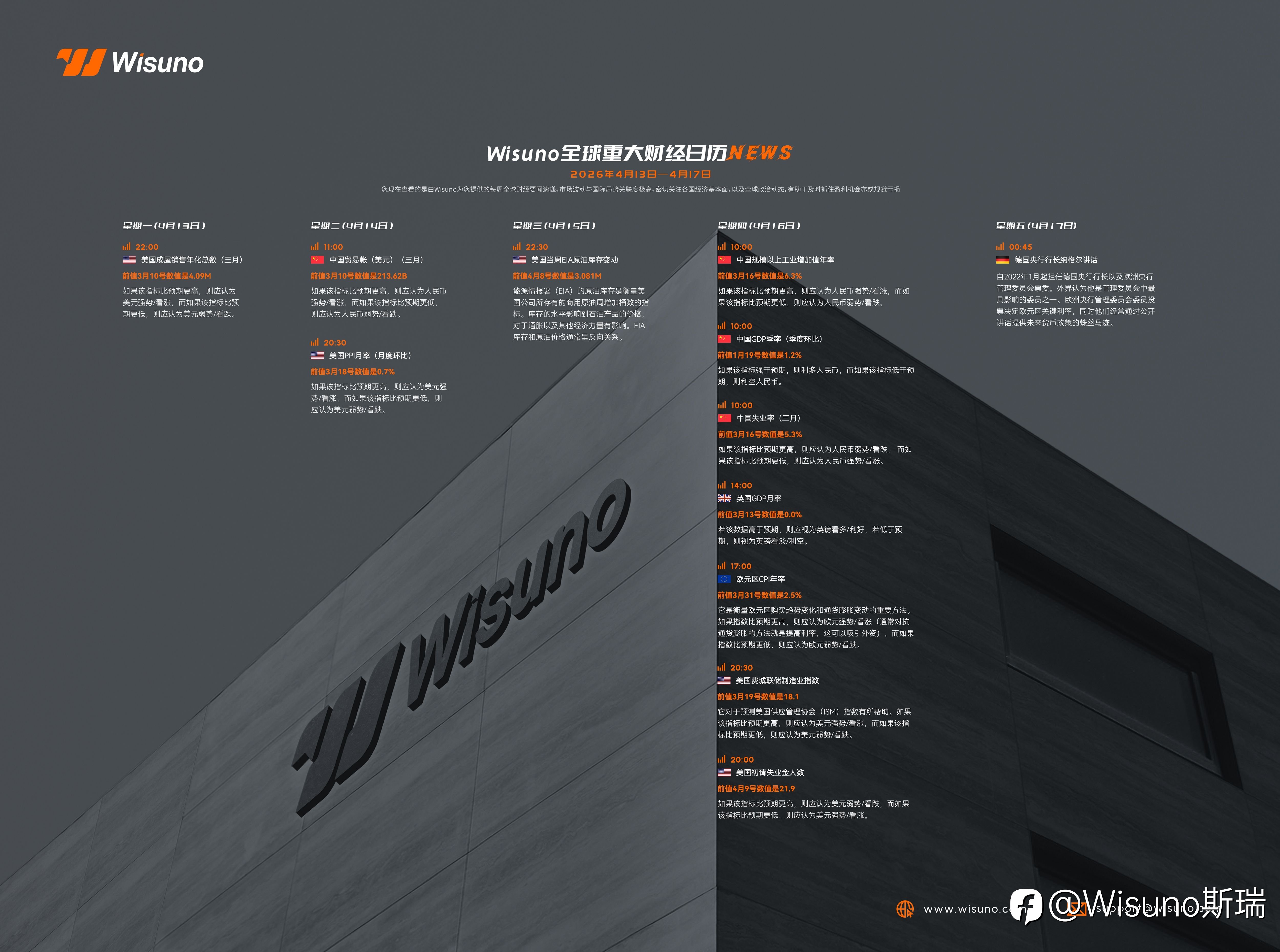 Wisuno | 本周重要财经数据与事件前瞻(2026.04.13-2026.04.19)