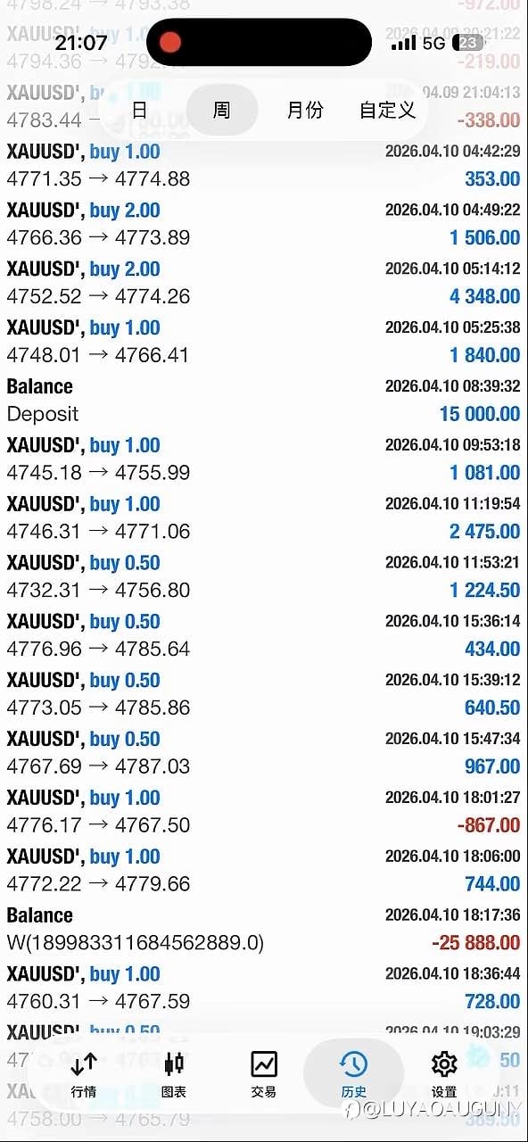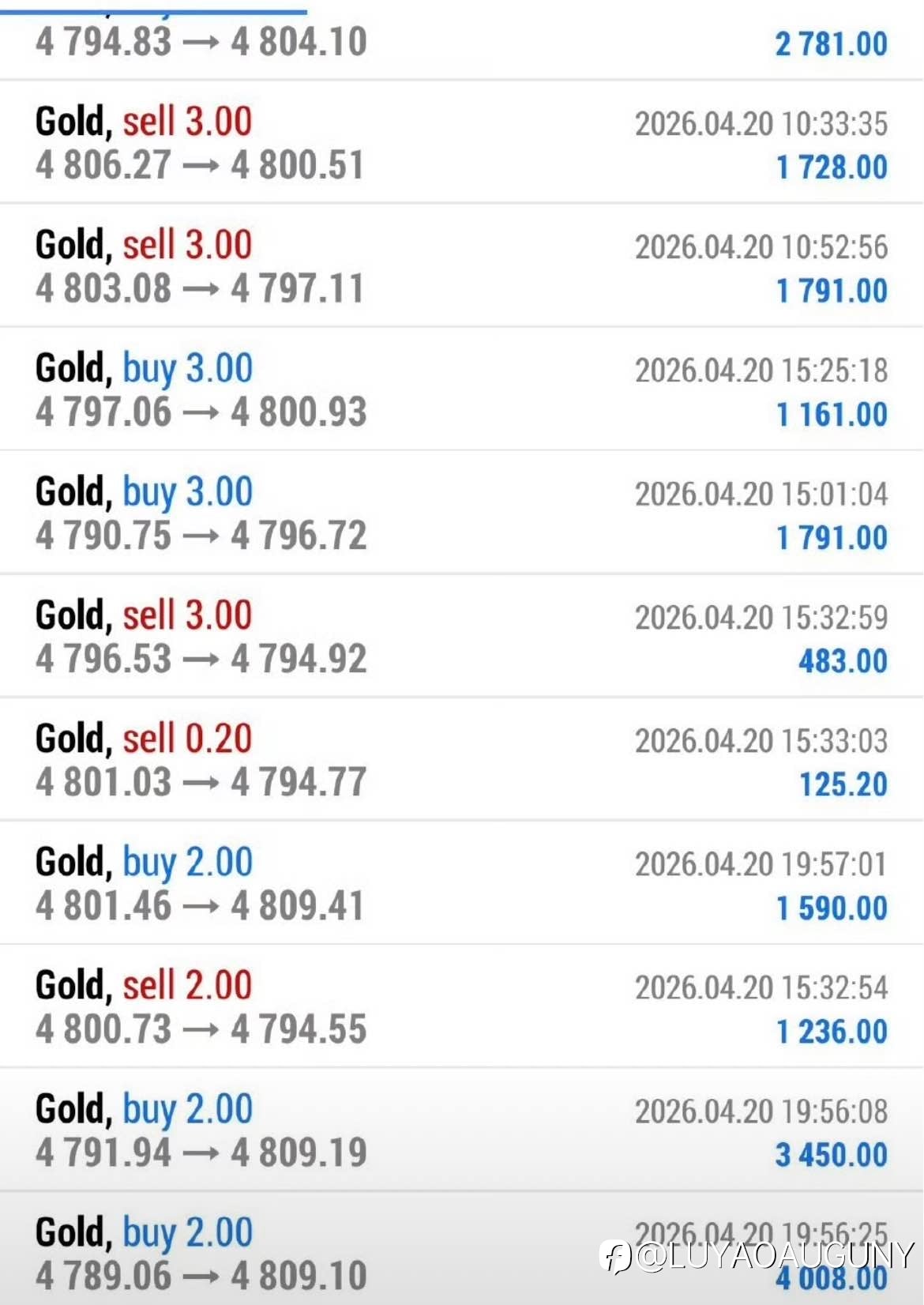 近期璐瑶多空双杀,把握趋势把握的很到位。 黄金高空落岱下来,反手进多,分三批离场,4000刀落岱