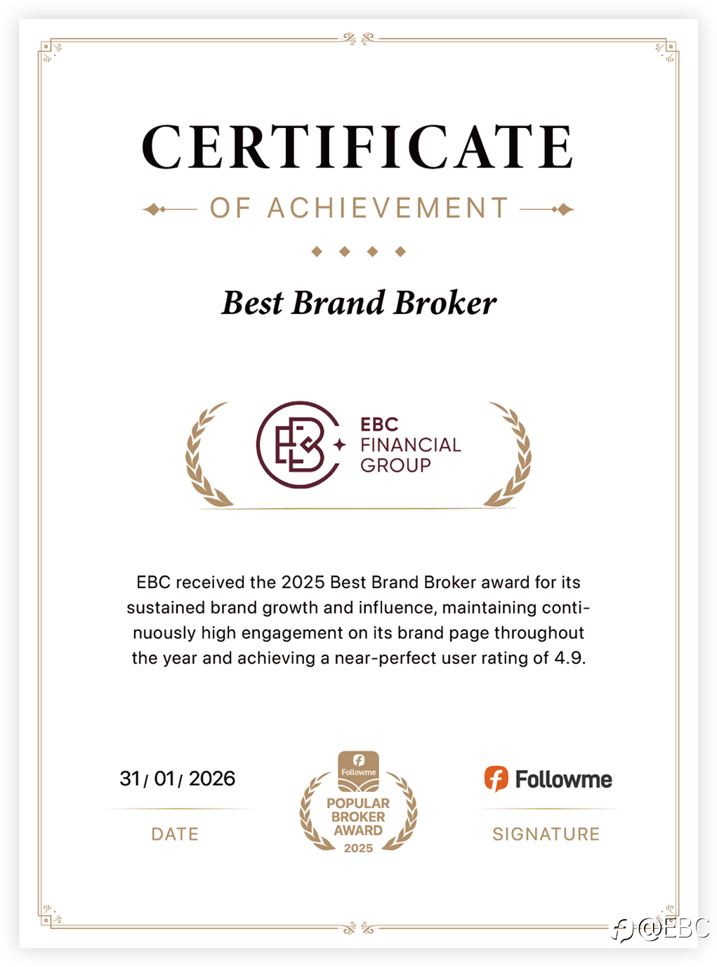 EBC获Followme"2025年度全球最佳品牌券商"大奖