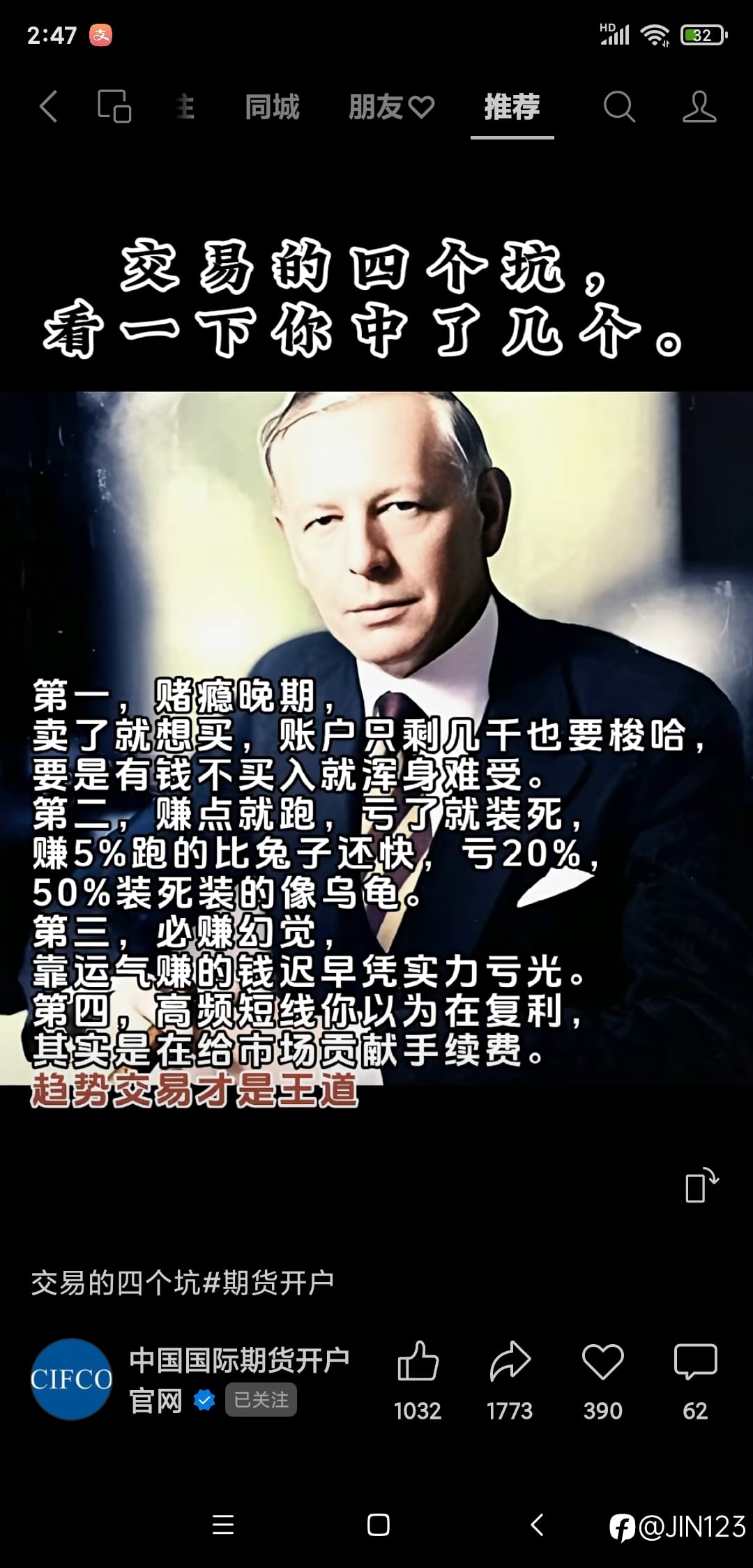 交易为何如此难赚钱?有些人会说,我没那头脑,有些人又说我技术不到位,这些都不是真正的原因,真正的原因是你做不到,你不能做到知行合一,做不到反人性,做过几年实盘的人,你亏多了,哪些手法要不得你是非常清楚的,比如,不设止损,亏损加仓,重仓,抗单,频繁操作,赚一点就跑亏就死扛,很多人都是死在这些老毛病,但即便你知道你也改不掉,所以交易根本不是智商不够的原因,是你控制不住自己,归根结底就是心理层面的因数,你为何明知道错,还会去犯?我列举几个场景,让你知道人性的可怕。 1 我下了一单,然后设了止损,但行情反着走快要打止损了,我心想扩大一下止损位置再抗一下,万一赚回来了呢?然后就移动了止损,然后又快要打止