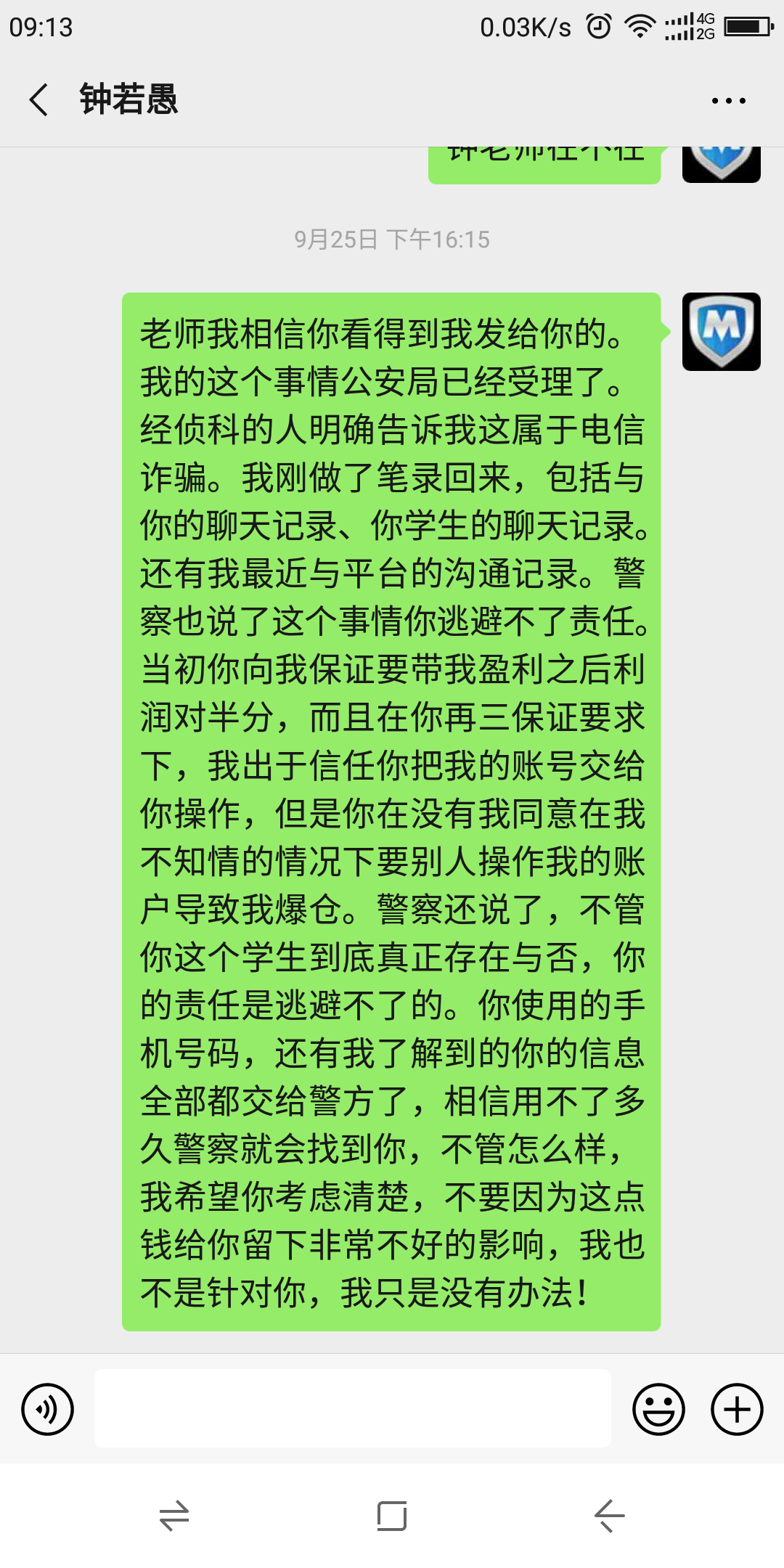 钟若愚一九年七月主动要求替我操盘重仓30手爆仓一万美元后死不承认!做人毫无底线,人格严重缺失!