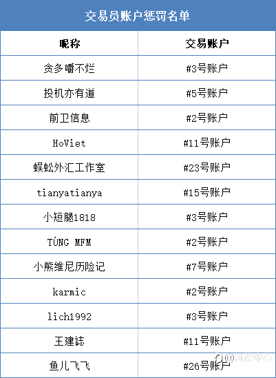 1-2月份信号账户惩罚公告