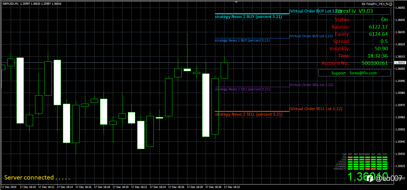 ForexFiv EA v9.3是几种非常先进的秘密算法与一个市场扫描仪的结合,该扫描仪能够找到最佳的市场条件来开展交易。这种组合每月可带来100%+的利润,最大亏损不超过10%。一年的回测(见下文)显示,利润增加了2,051%,最大亏损仅为0.45%。同时,EA不使用危险的交易方法-ting,对冲,网格。 ForexFiv EA v9.3的特性: 策略类型:头皮EA 平台:MetaTrader 4 货币对:任何,建议的AUDUSD,EURJPY,EURUSD,GBPUSD,USDJPY 交易时间:推荐M5 ForexFiv EA v9.3交易算法: 正如我上面提到的,EA交易程序具有一定的秘