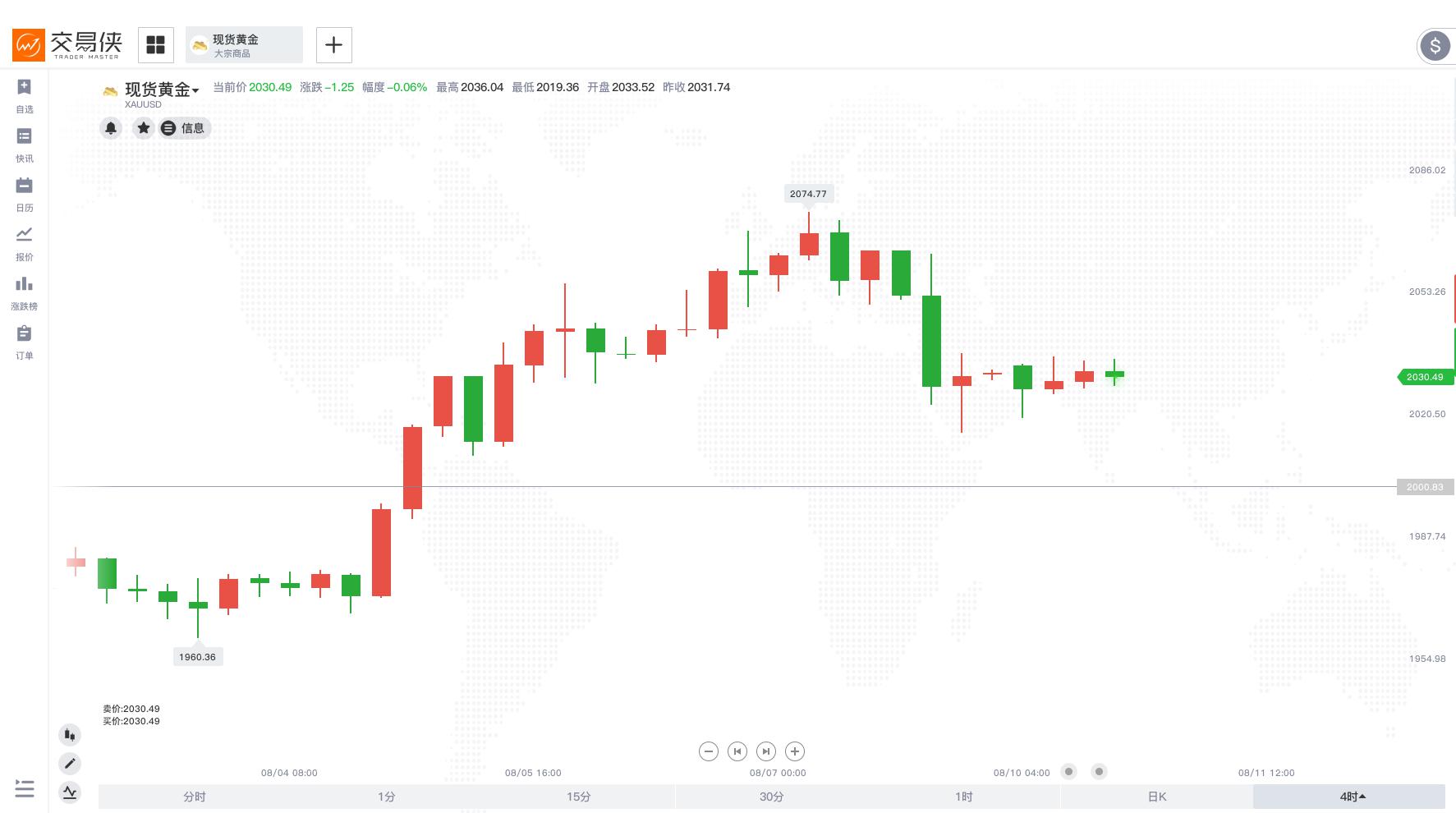 自上周二现货黄金上破2000大关以来,金价最高上触2074美元/盎司,近日虽回调至2030美元附近,但周线仍收于2000大关上方。