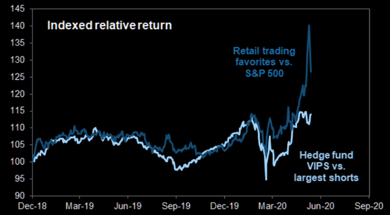 高盛上月末分析的一篮子“散户精选股”的回报表现要明显好过对冲基金,随着对该数据的追踪,尽管经历了上周四的暴跌,但我们仍然发现现在美股散户的回报领先幅度更大了。