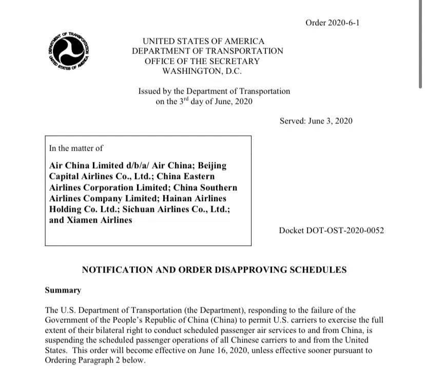 ◆ 延伸阅读:美国宣布将暂停中国客运航班,这些热门航线受冲击
