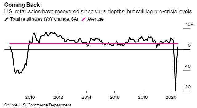 美国6月零售销售增幅高于预期,但新冠肺炎病例重现和高失业率正在威胁刚刚萌芽的经济复苏。