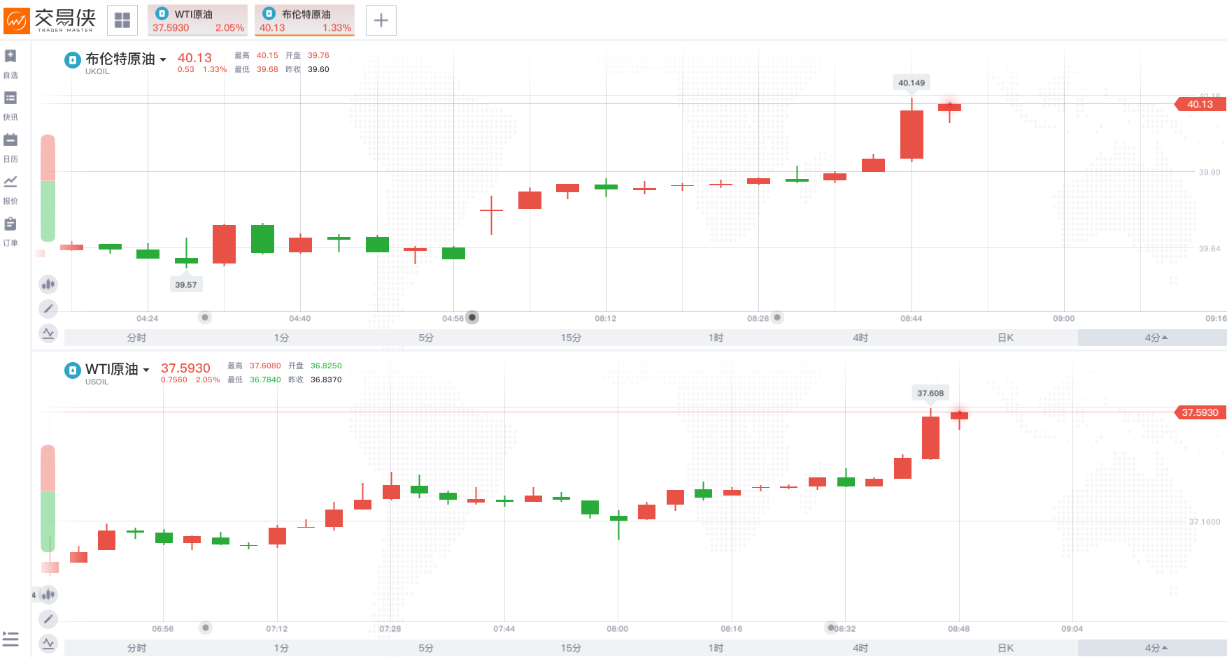 北京时间6月3日,美、布两油,WTI原油期货涨幅扩大至2%,现报37.56美元/桶;布伦特原油期货站上40美元/桶关口,为3月6日以来首次,随后涨幅扩大至2%。