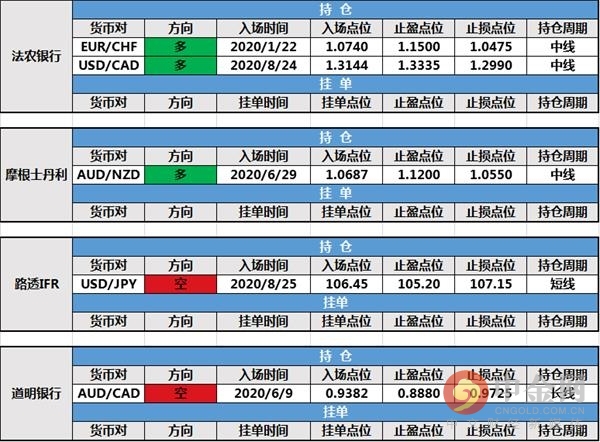 【投行报告】8月28日投行持仓报告:非美货币冲高回落,三菱日联持仓止损出局,路透IFR持仓止损出局