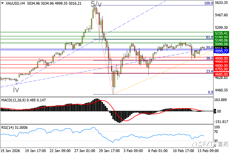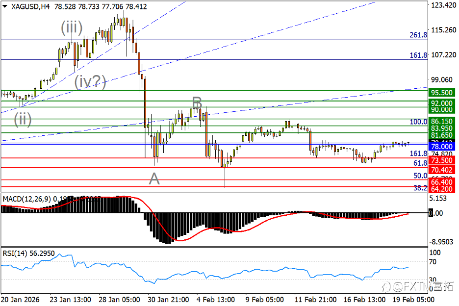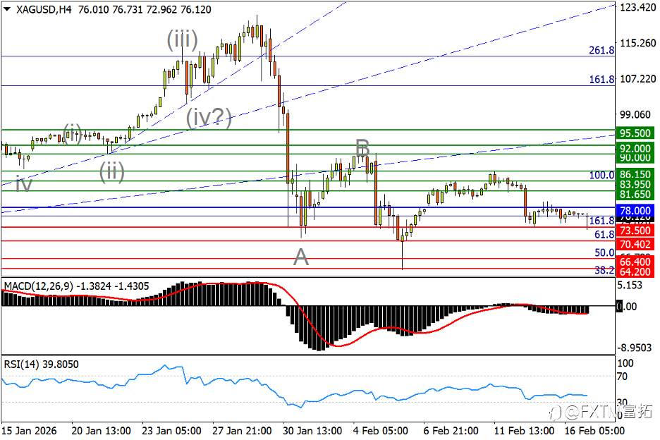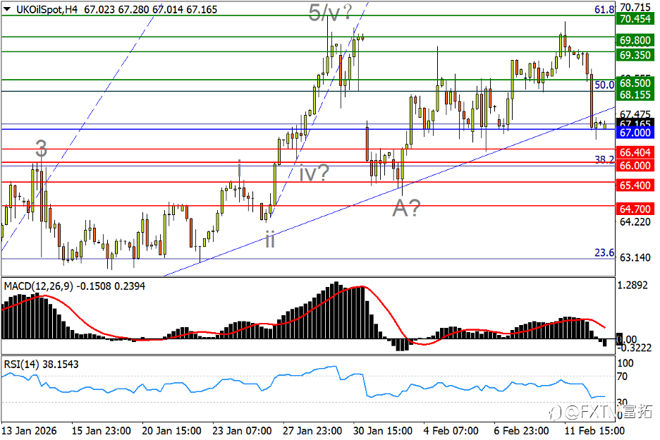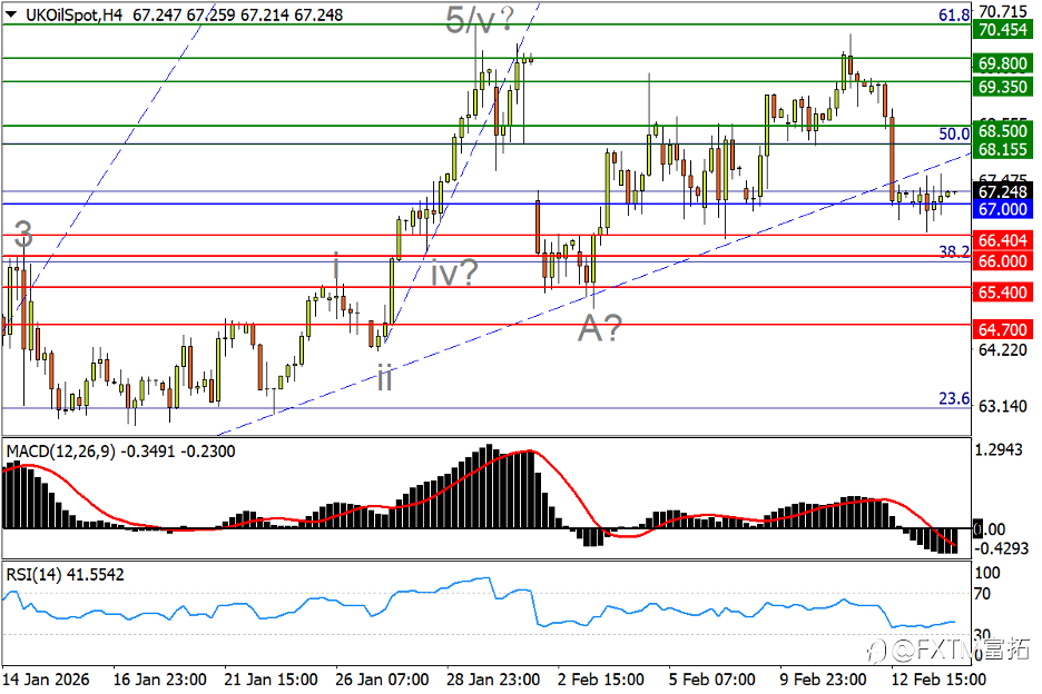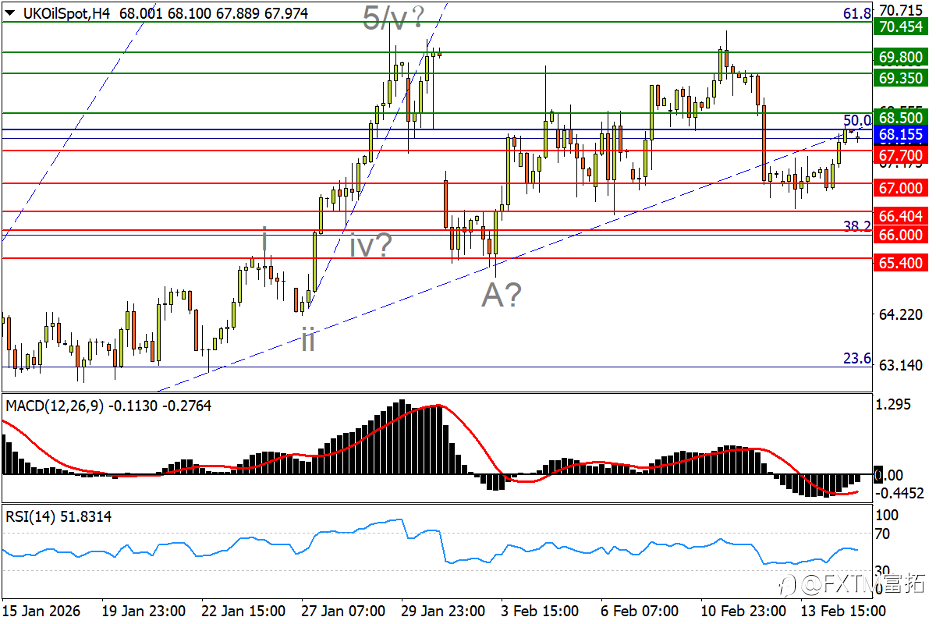 NO.1 纽元/美元(NZD/USD) – 联储姿态有欠强硬,回至近期区间下沿 日线图看,新西兰联储早间如期维持利率不变,但委员们一致认为政策应保持宽松。观点压制纽元下挫,汇价亚市盘中回至两周来的区间下沿。如果继续将0.60关口(在1月26日、2月2日和9日都出现过波段折返)跌漏,即将完全开启调整空间,同时为5浪升势是否启动埋下更大隐患。后续支撑参考去年3季度涨势的23.6%回撤位0.5970,以及24年11月下旬反弹高点0.5930。指标格局流露恶化先兆:MACD高位死叉后持续缓跌;RSI有在强势区向下拐头的迹象。 4小时图看,虽然纽/美盘中跳水,但尚未脱离一周多来横向震荡区间,