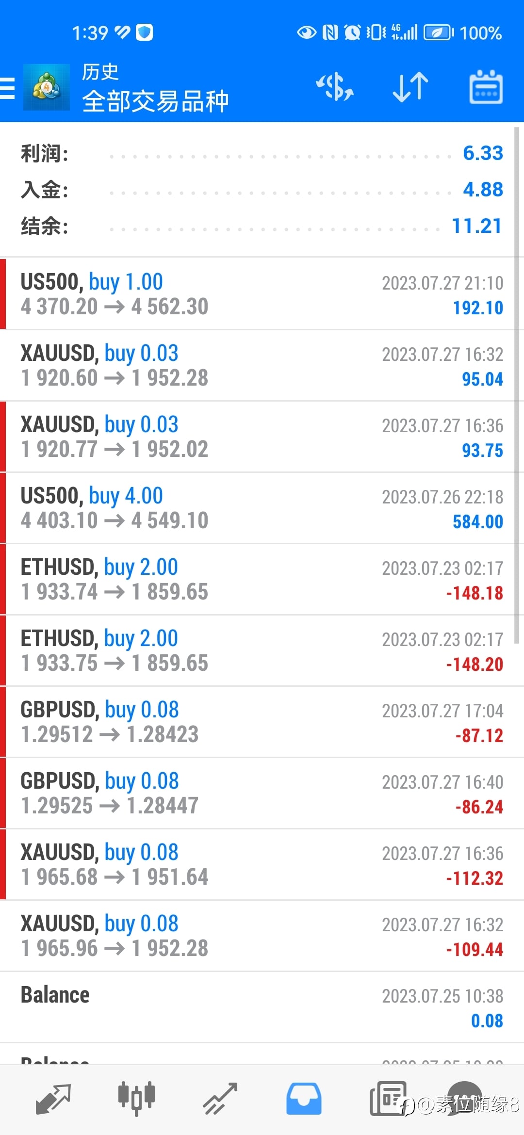 又下载了followme软件,看了看曾经到处喷人自己才是悟道的各种大神,几百刀的账号已经消失沉寂。不是交易残酷无情,而是人认识真实的自己太难太痛苦。