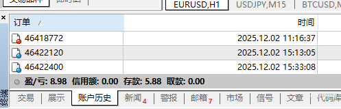 账户余额只剩5美金多了,靠着这点刀,今天干到了15刀;做了欧美。上个月入金100刀,全部亏光了,实打实的靠自己的能力亏了,风控还是做的很好的情况下,慢慢亏损,连续多笔亏损。不该听老师的,不该看网课学习。还是...