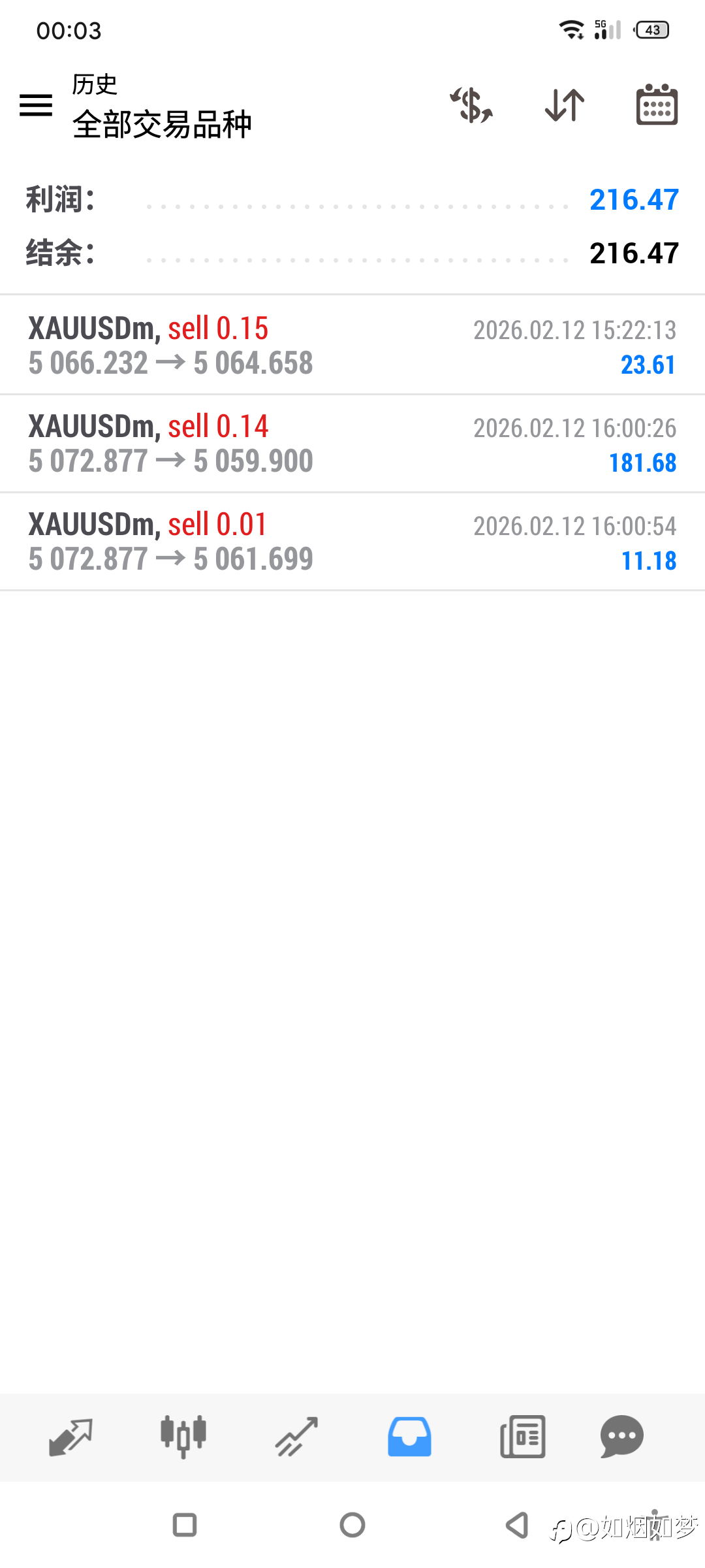上完今夜最后一个夜班班,就是春节放假4天。所以,我决定利用这几天休息时间,全面冲刺一下,好好交易。目前账户余额233美金,我将尽最大努力,在一个星期内,把余额做到最大化! 我的 5 号账户,订阅已打开,有兴趣的朋友可以了解,关注一下。5号账户,如图所示。一个星期后,2月22号,再回来跟大家分享新的内容! 加油,相信自己,一定会成功!