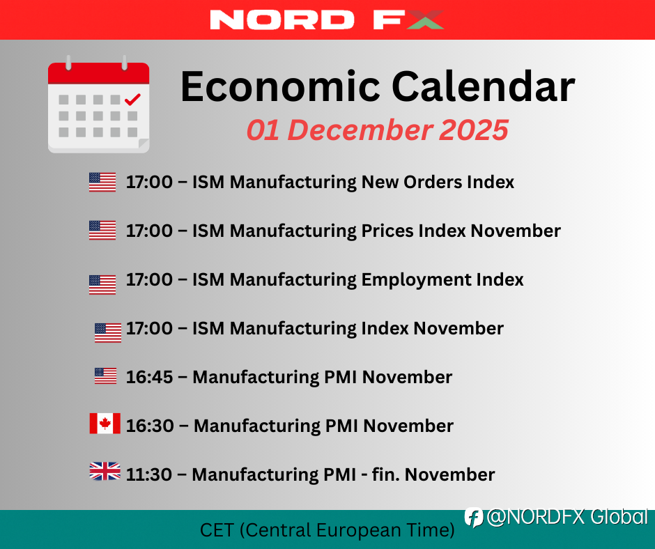 📉 December opens with fading momentum The early rebound on Wall Street is losing steam, even though this period is traditionally associated with the so-called Santa Claus Rally. The sharpest pullback is in Nasdaq 100 (US100: –0.9%) and Russell 2000 (US2000: –0.8%). US500 is down 0.7% and US30 slips