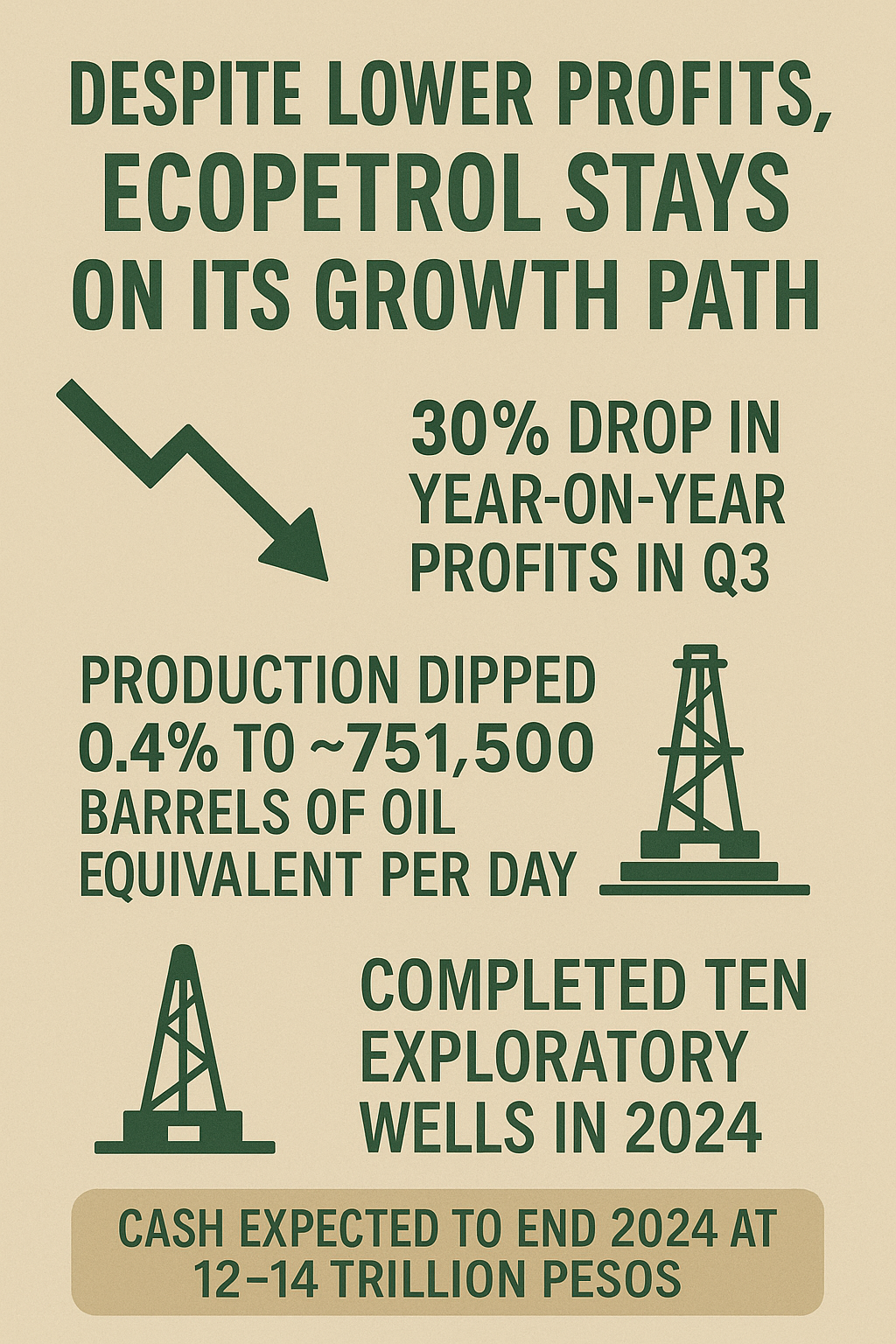 Ecopetrol recently shared its latest financial update, revealing some mixed results. The company reported a 30% drop in profits year-on-year during the third quarter. Production also saw a small dip, falling 0.4% to around 751,500 barrels of oil equivalent per day. Even with these setbacks, Ecopetro