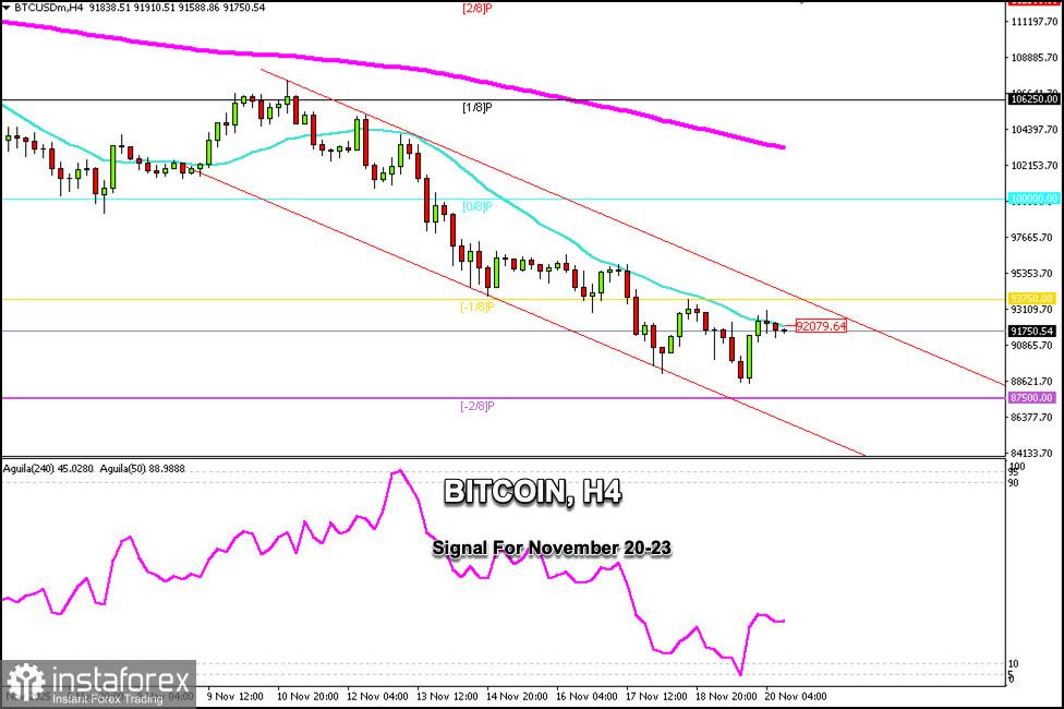 Sinyal Trading untuk BITCOIN pada 20-23 November 2025: beli di atas $90.000 (SMA 21 - Murray -2/8 )